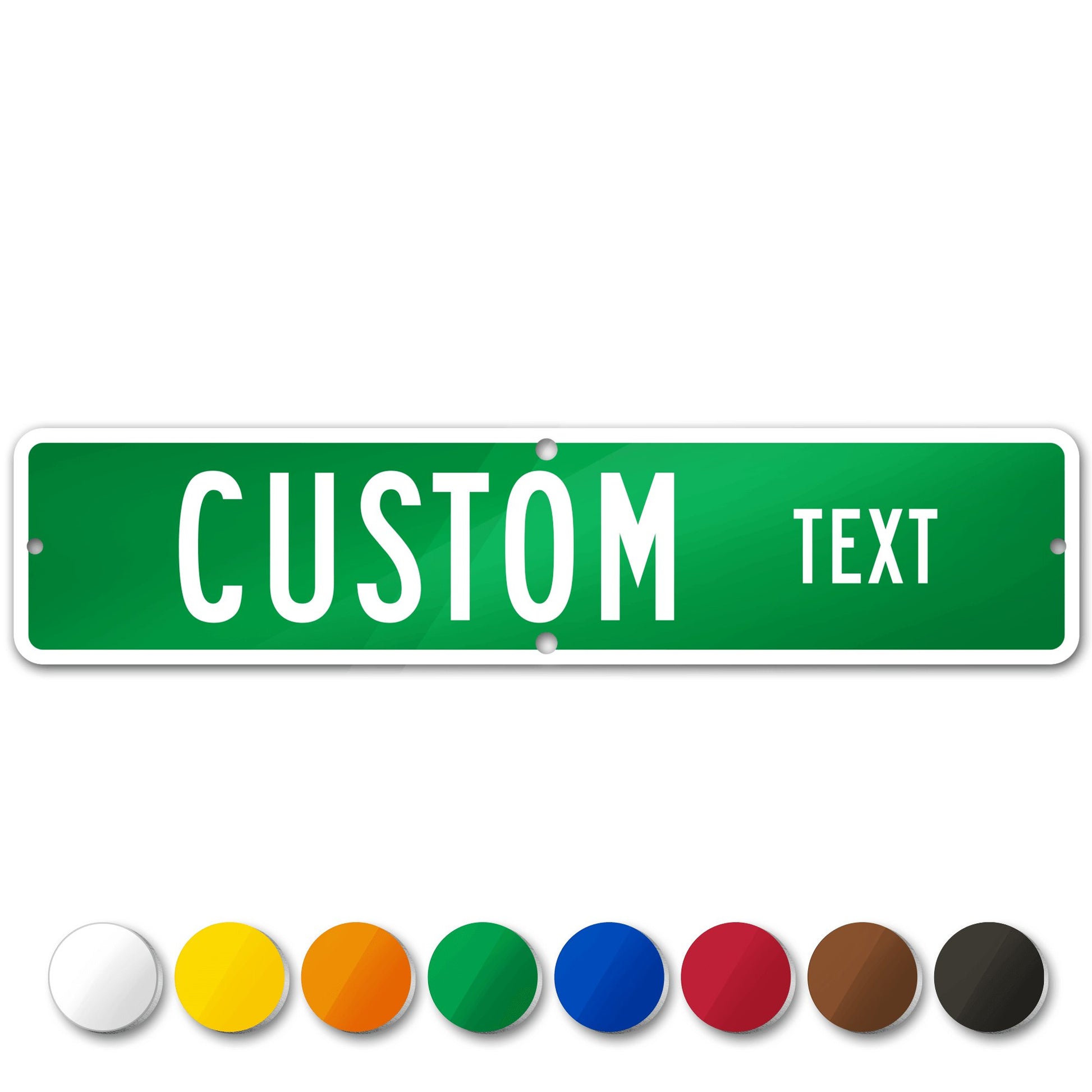 "My Sign Center, manufactures and distributes a wide variety of signage for personal and business use. With a passion for creativity and design, We believe in the life-changing power of creative designs and their ability to enhance communications, that's why our goal is to be Your Store For All Signage Needs and bring the world together in understanding on sign at a time. Always the best materials possible, That' why our address custom signs are made with premium grade AlumaBond which is a composite made out of aluminum on both sides with PVC in the middle makes it 1/8"" thick that gives advantage of durable, light weight and cost effective. These street signs customized are printed with outdoor grade inks with a layer of glossy polyester film laminate that protects the print and ads a nice glossy finish that will withstand the elements of the weather and chemical. These Green Roads Street Sign are designed to adhere aggressively to the surface and prevent the graphics from peeling or easily being scratched and laminate makes it easy to wipe off graffiti. They can be ordered either with pre-drilled holes from the two sides, holes on the top and bottom for post mounting or adhesive backing ready to install so that they can be post mounted or be mounted to any other surface, Radius corners are also added to each personalized name signs for safety and design. All street signs for bedroom are carefully designed by highly skilled graphic artists to ensure that they have the best possible look and gets your message out in the most professional way that can be used as directions, warning, room name, room identification or display custom sign. These custom signs outdoor metal measure 6"" tall x 24"" wide and are 0.63"" thick, The Perfect size to draw in attention to name signs personalized so no one can miss it. Communicate your important message in a bright, safe, and easy to read way. "